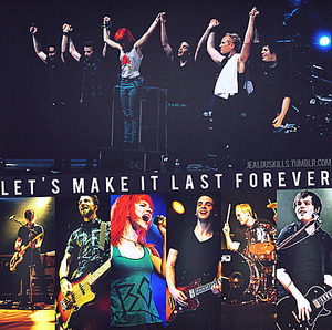 It never ends Paramore es una banda estadounidense de rock. Fue formada en Franklin (Tennessee) en 2004, y nominada a los premios Grammy. Está integrada por Hayley Williams (voz), Jeremy Davis (bajo) y Taylor York (guitarra rítmica). En 2005 editaron su primer álbum All We Know Is Falling, en 2007 lanzan su segundo disco Riot! que fue certificado con el Disco de platino en Estados Unidos y en el Reino Unido, y con el Oro en Irlanda y Nueva Zelanda vendiendo más de dos millones de copias en todo el mundo. Su tercer trabajo, Brand New Eyes fue lanzado el 29 de septiembre de 2009 debutando en el número 2 del Billboard 200 y vendiendo 175,000 copias en su primera semana alcanzando el platino en el Reino Unido.